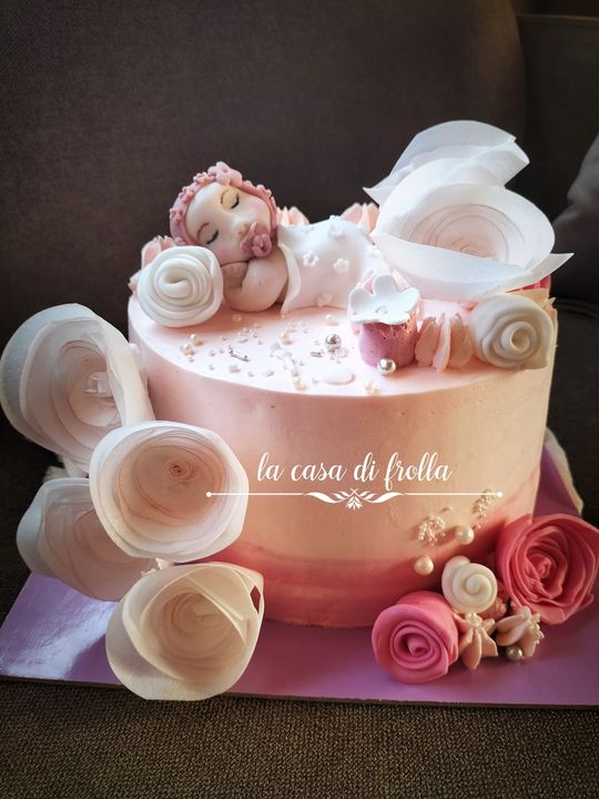 È stata una emozione dedicare questo dolce a una nuova vita. Volevo fosse delicatezza e purezza, amore e dolcezza.(cake lime e vanilla, doppio strato di crema al lime e ananas fresco, stuccata in sola crema al limone sui toni pastello. Tutte le decorazioni sono state realizzate a mano libera) Grazie di cuore a Erika Donadel per essersi affidata alla mia creatività. La CASA DI FROLLA, pasticceria artigianale creativa.