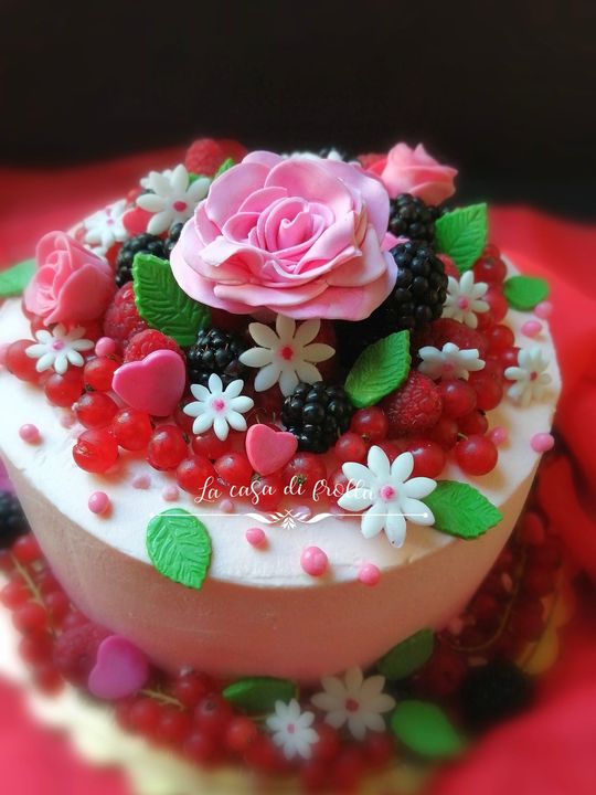 Una torta alla vaniglia, un doppio strato di crema al cioccolato e diplomatica, tanti frutti di bosco, primizie della stagione, tra i loro gusti preferiti. E poi, un tocco di romanticismo, con qualche fiore, qua e là, una pioggia di cuoricini colorati e una rosa protagonista, in centro torta. Tutto, come sempre realizzato a mano ma sopratutto con il ❤️. Grazie a Chiara che anche questa volta ha scelto LA CASA DI FROLLA per questo evento e un grazie sincero per tutto l'affetto che mi dimostrate con i vostri riscontri. Auguri agli sposi!