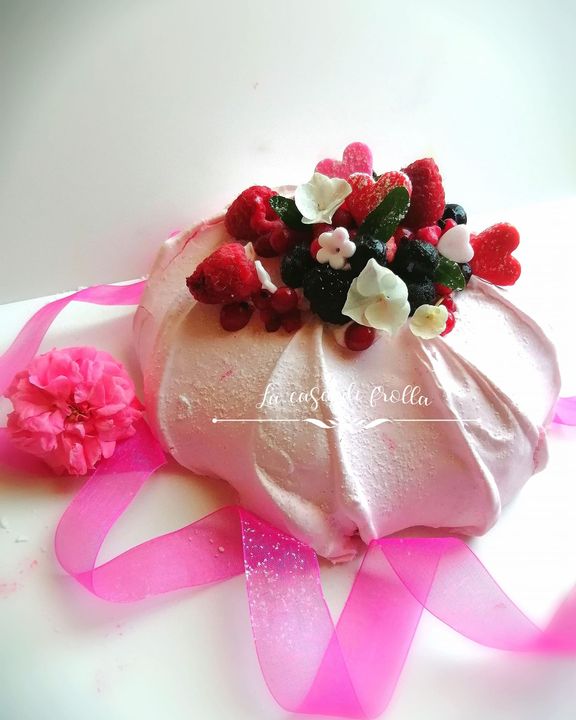 Se non conoscete la storia di questo dolce, vi invito a farlo. Sono sempre felice di poter proporre la pavlova per le vostre occasioni, un dolce delicato, etereo, dalla incredibile scioglievolezza. In questa versione una pavlova in rosa, farcita con curd ai lamponi, more, per dare al tutto quella nota acidula che ben contrasta con la dolcezza della meringa, panna montata e tanti frutti di bosco. Auguri Anna, grazie per aver scelto LA CASA DI FROLLA ????