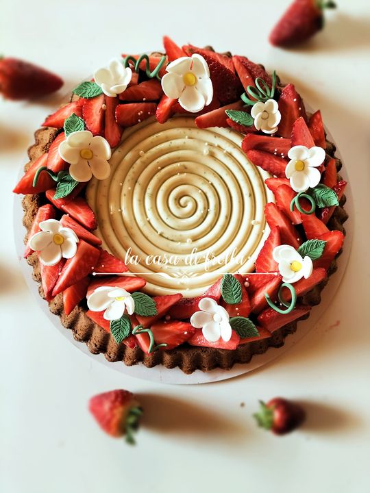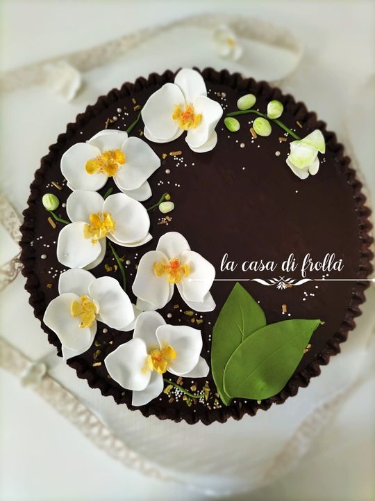 Avevo una certezza per la torta di compleanno di Federica: il cioccolato fondente doveva essere il protagonista, lei lo adora. E poi, si è fidata del mio istinto. Crostata al cioccolato composta da un fondo di cereali croccanti, granella di pistacchio, cremoso al pistacchio di Bronte e gianduia e, per finire ganache al cioccolato fondente e vaniglia. Le orchidee che decorano il dolce sono state create e dipinte completamente a mano, senza l'ausilio di stampi. Grazie a Federica e alla sua famiglia per la fiducia.LA CASA DI FROLLA 100% pasticceria artigianale creativa